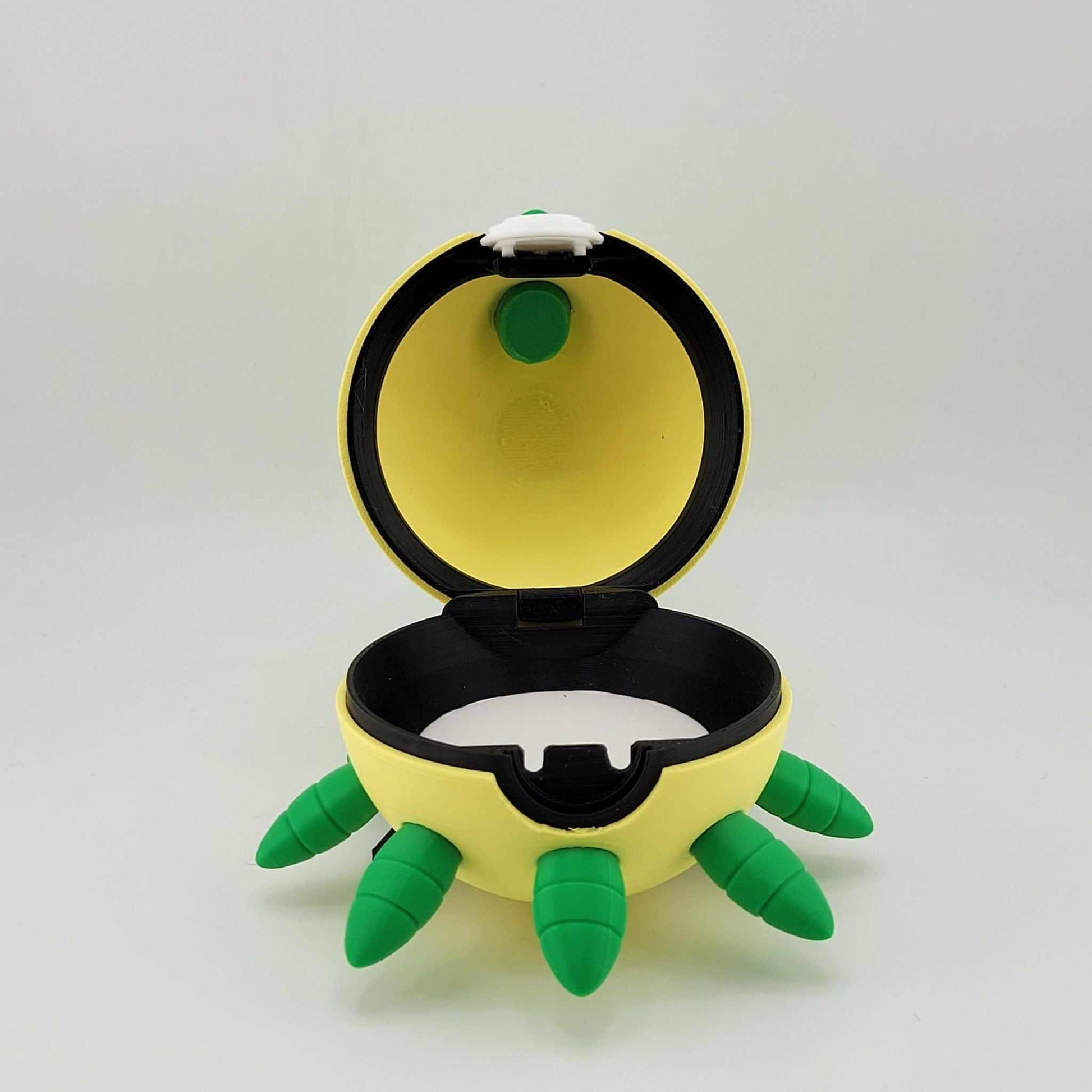 Each piece is printed with high-quality PLA and assembled by hand, right here in our home studio. Whether you're a longtime collector, a gamer with a soft spot for nostalgia, or looking for the perfect gift for your favorite geek, this Bayleef Pokeball adds a touch of magic to any shelf, setup, or Poké-party.