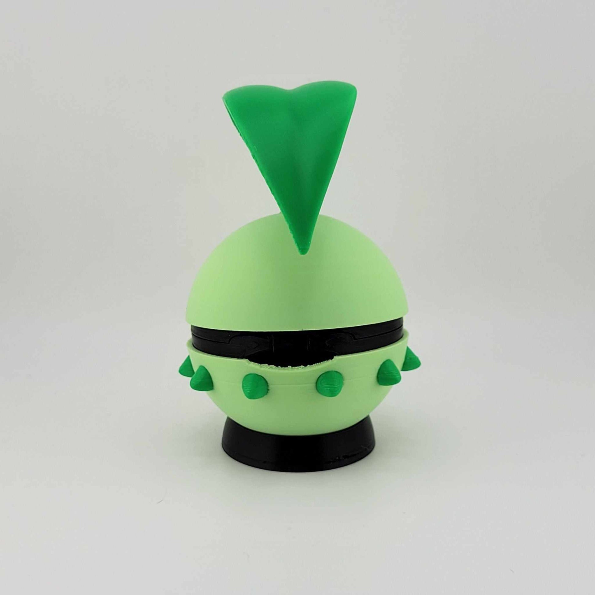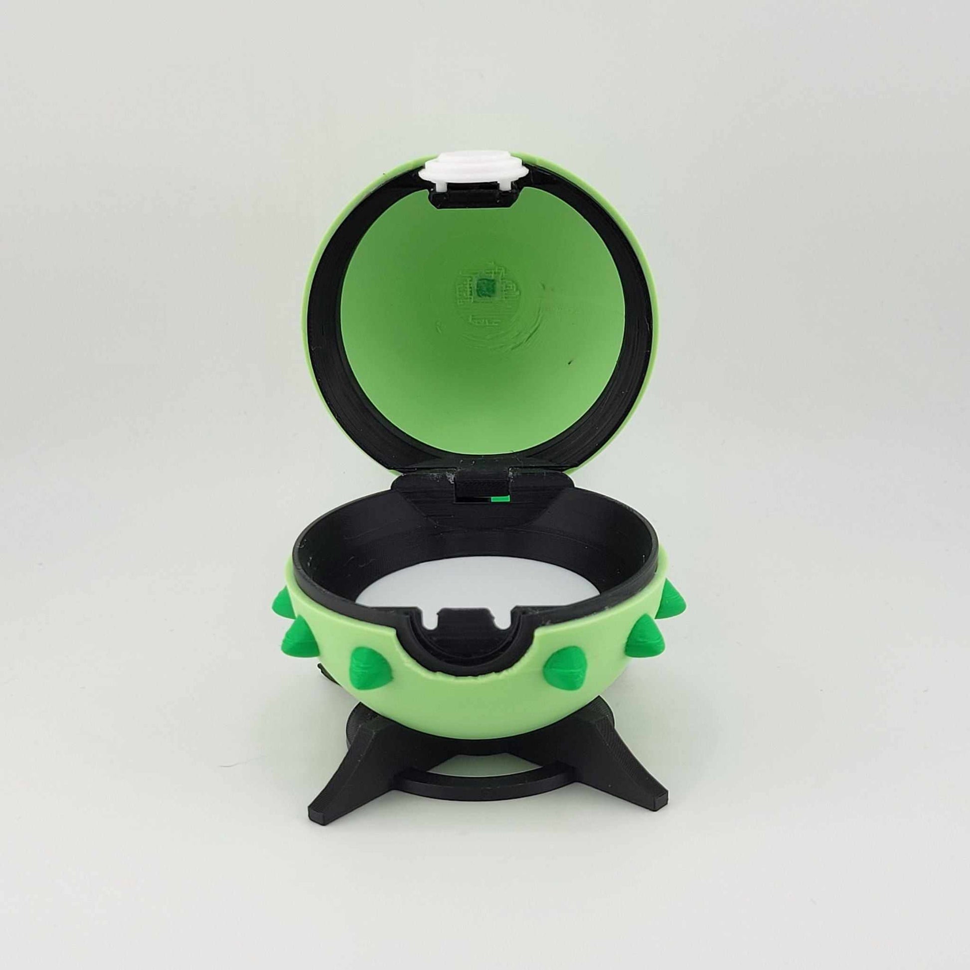 Each piece is printed with high-quality PLA and assembled by hand, right here in our home studio. Whether you're a longtime collector, a gamer with a soft spot for nostalgia, or looking for the perfect gift for your favorite geek, this Chikorita Pokeball adds a touch of magic to any shelf, setup, or Poké-party.