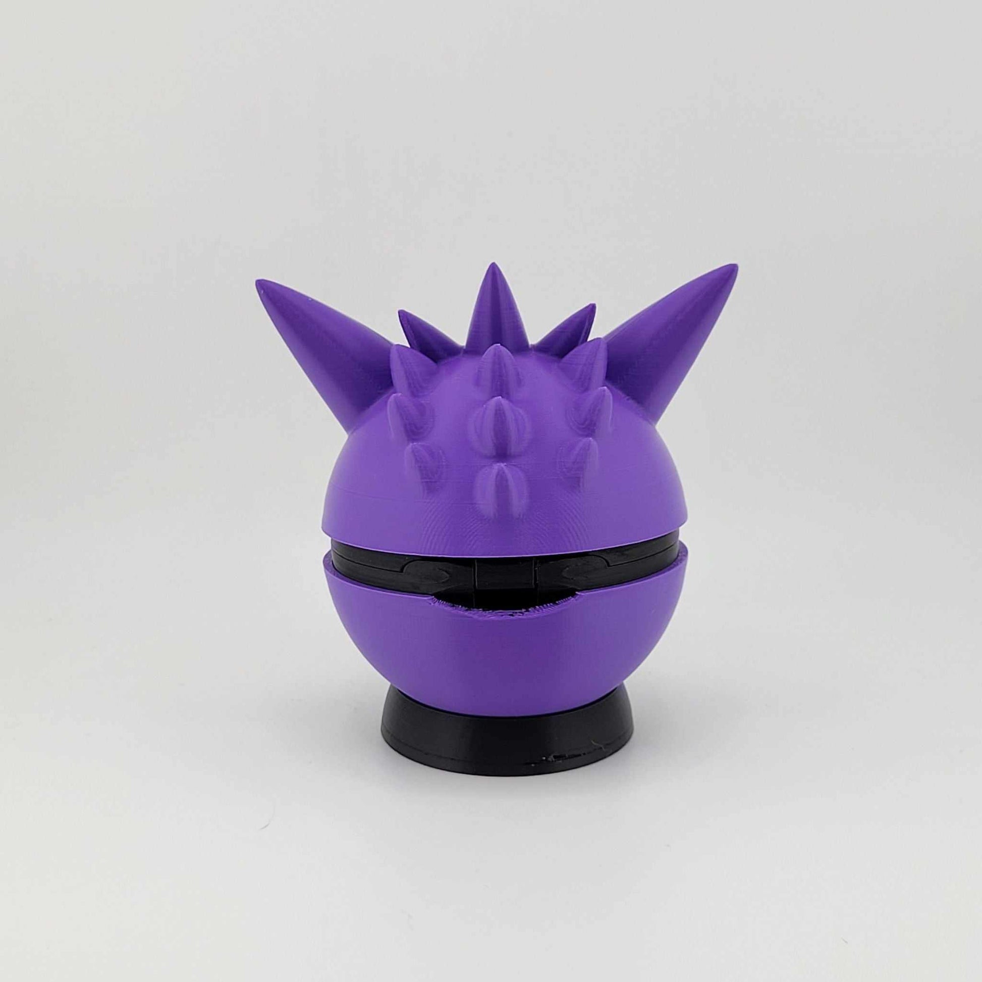Step into a world where fantasy meets the real world—one 3D print at a time. This handcrafted Gengar Pokeball is inspired by Pokemon's Gengar, designed with fans in mind and brought to life with care, detail, and just a spark of mischief.