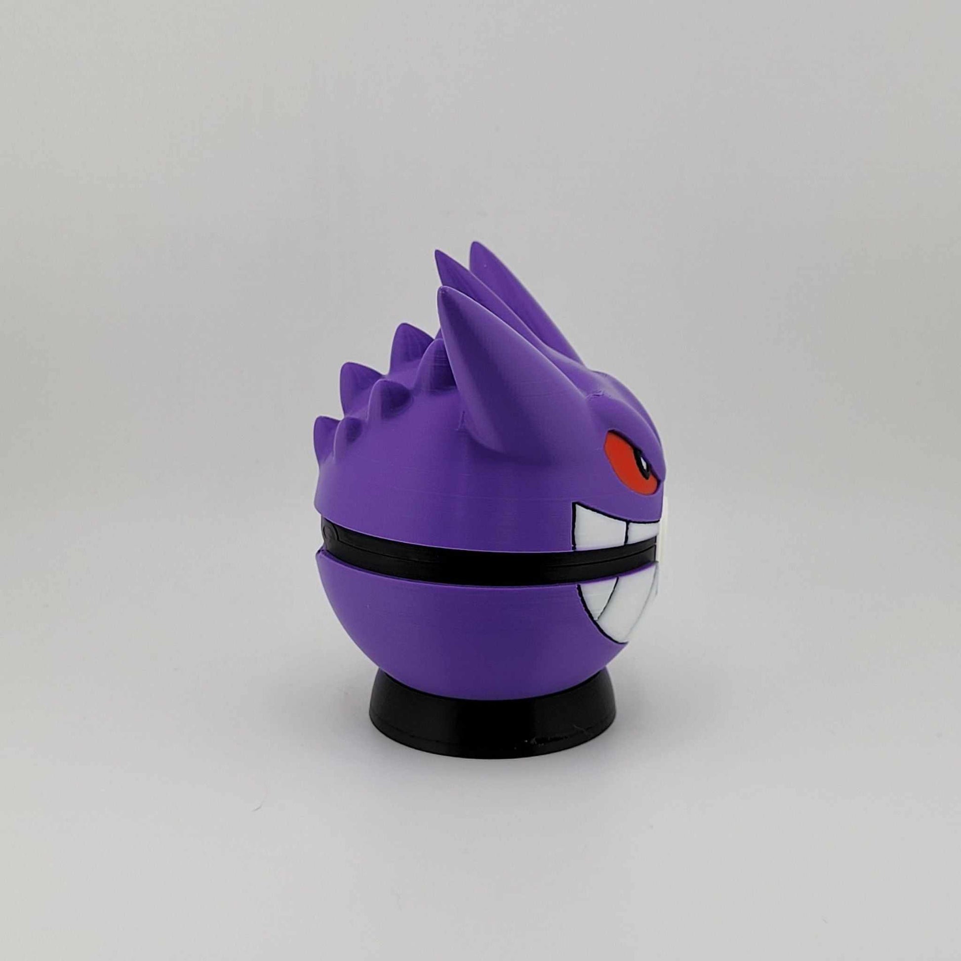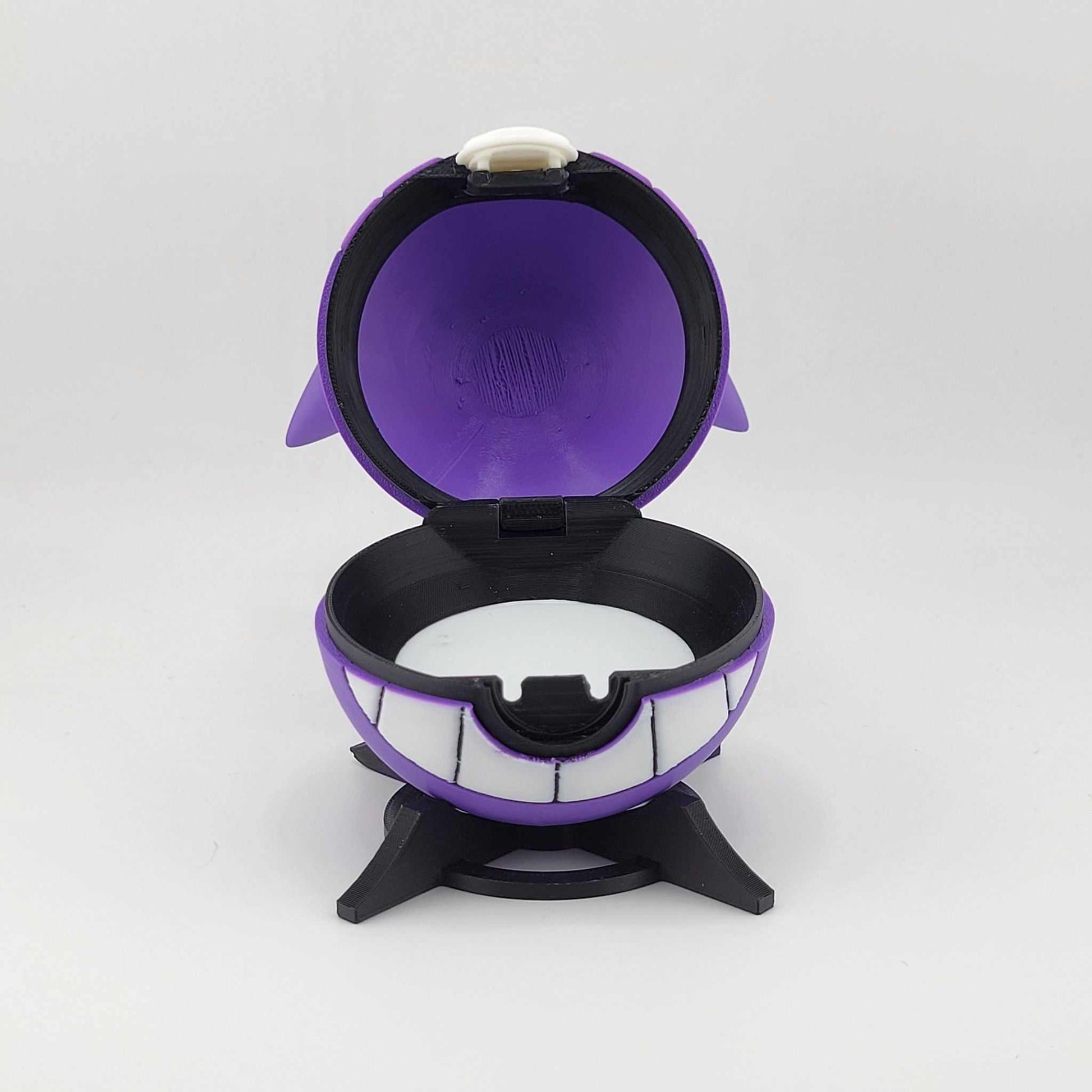 Each piece is printed with high-quality PLA and assembled by hand, right here in our home studio. Whether you're a longtime collector, a gamer with a soft spot for nostalgia, or looking for the perfect gift for your favorite geek, this Gengar Pokeball adds a touch of magic to any shelf, setup, or Poké-party.