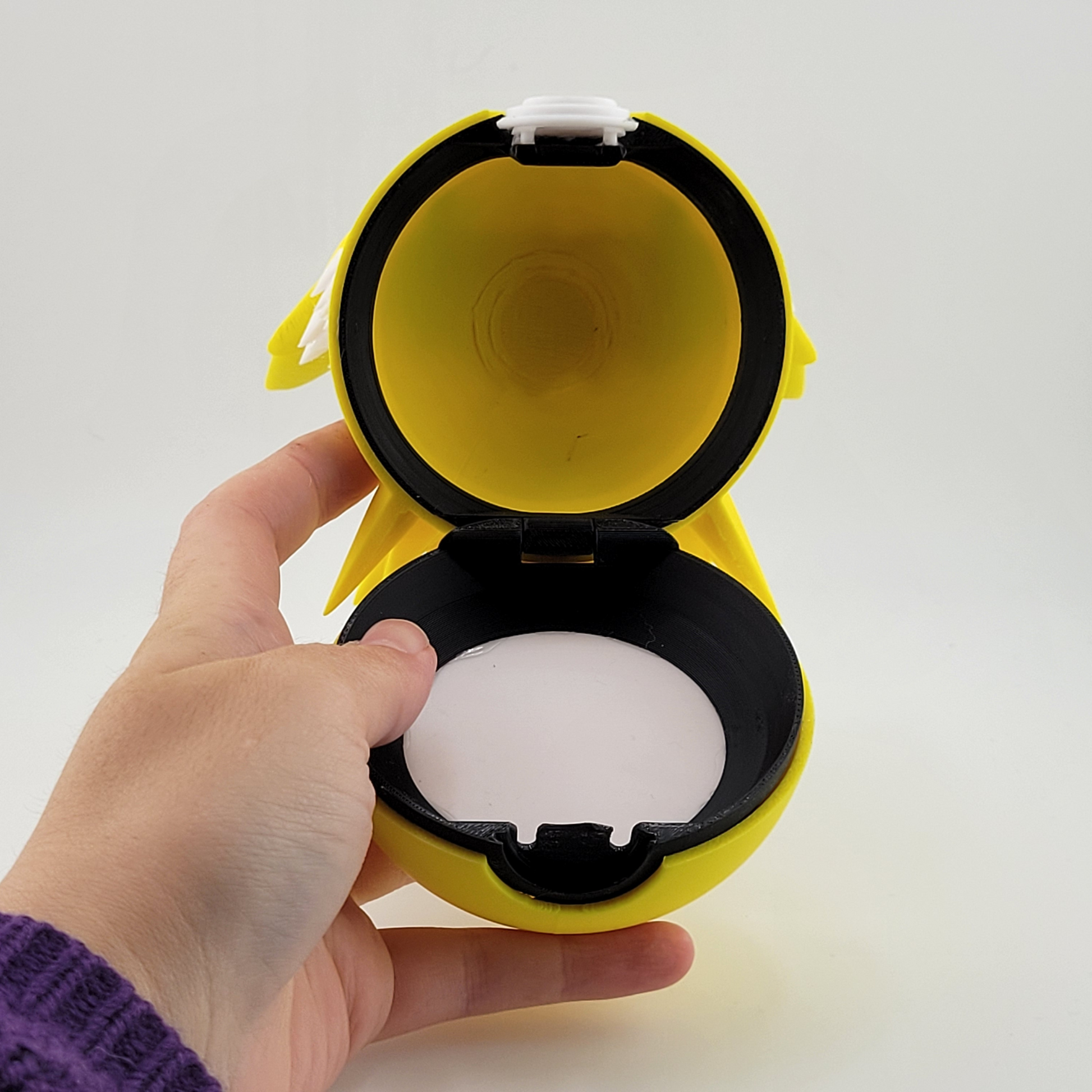 Each piece is printed with high-quality PLA and assembled by hand, right here in our home studio. Whether you're a longtime collector, a gamer with a soft spot for nostalgia, or looking for the perfect gift for your favorite geek, this Jolteon Pokeball adds a touch of magic to any shelf, setup, or Poké-party.