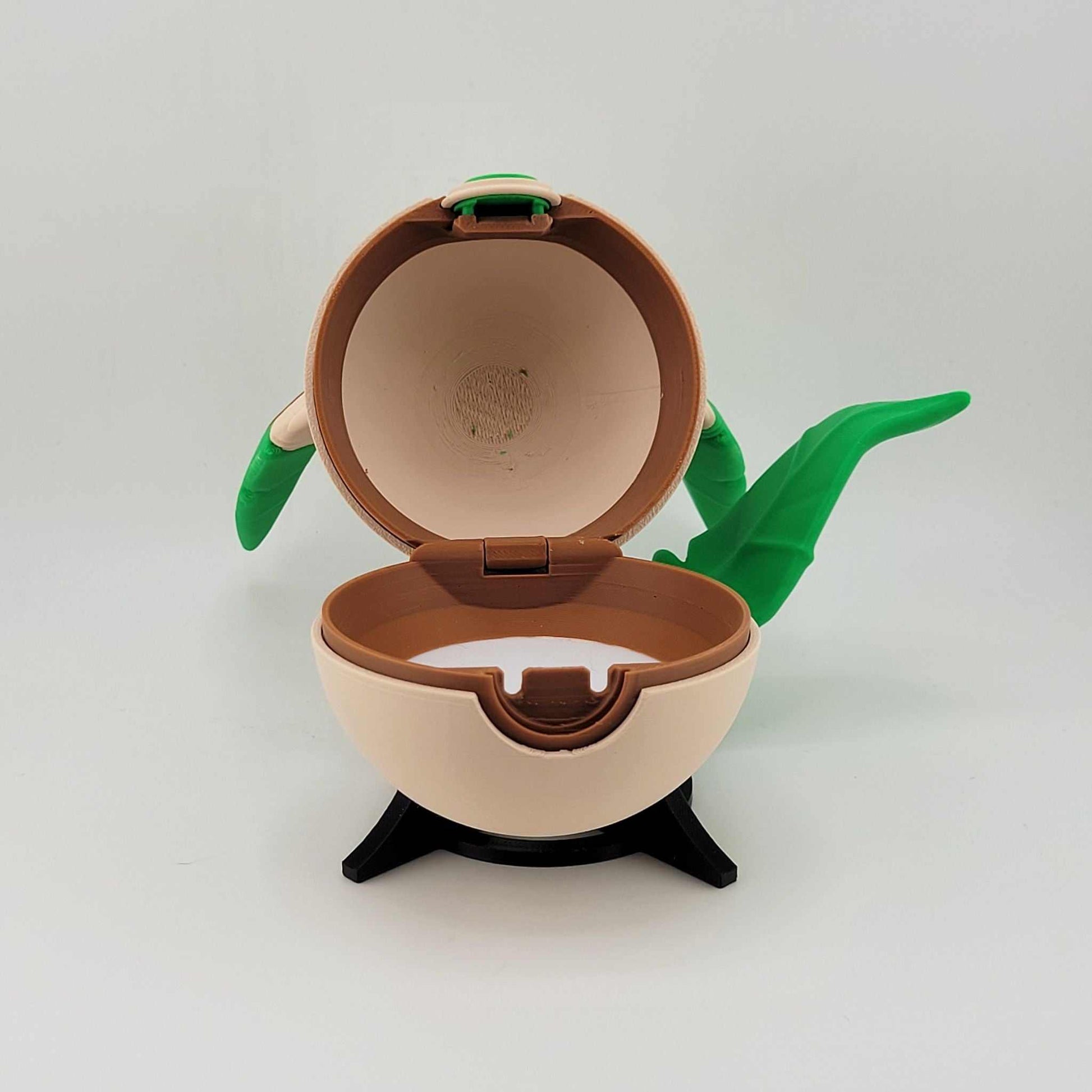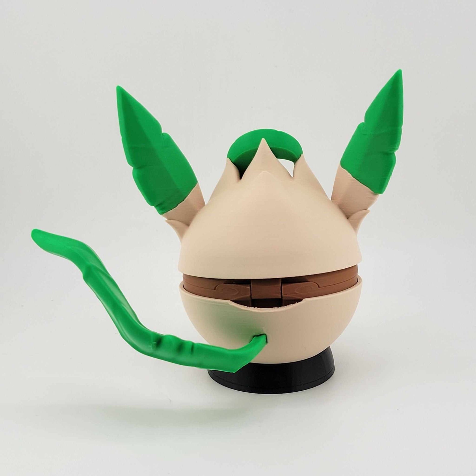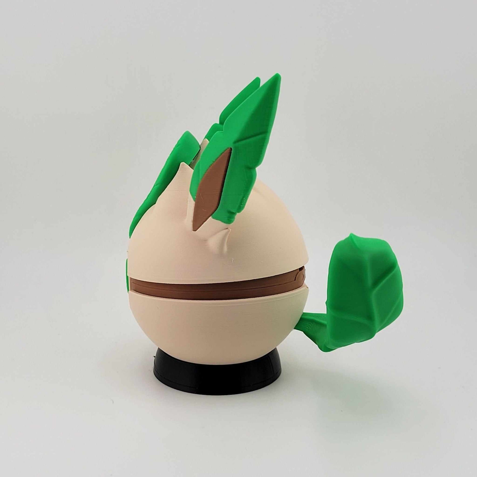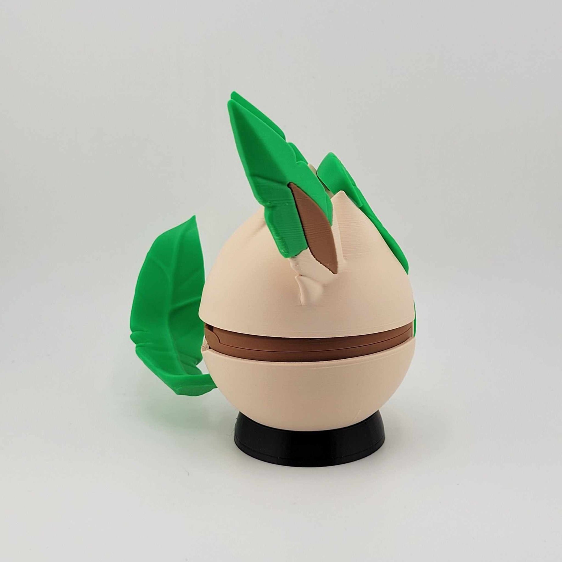Each piece is printed with high-quality PLA and assembled by hand, right here in our home studio. Whether you're a longtime collector, a gamer with a soft spot for nostalgia, or looking for the perfect gift for your favorite geek, this Leafeon Pokeball adds a touch of magic to any shelf, setup, or Poké-party.