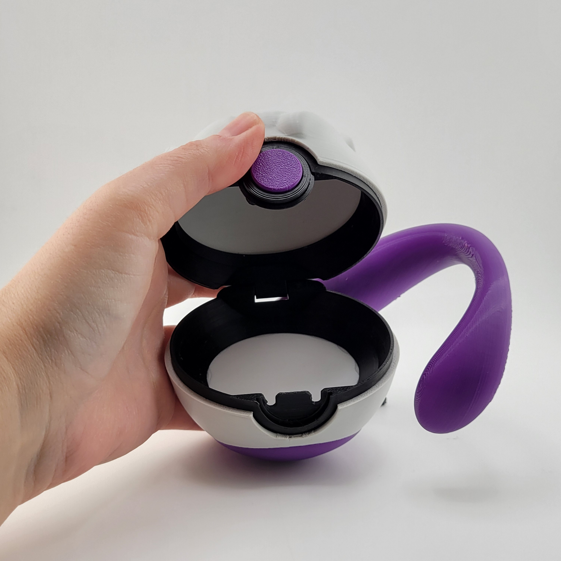 Step into a world where fantasy meets the real world—one 3D print at a time. This handcrafted Mewtwo Pokeball is inspired by Pokémon's Mewtwo, designed with fans in mind and brought to life with care, detail, and just a spark of mischief.