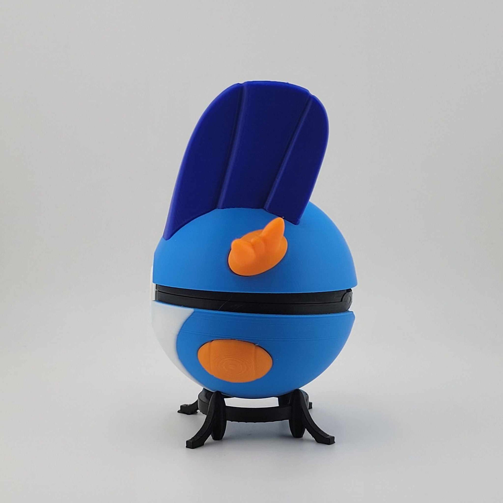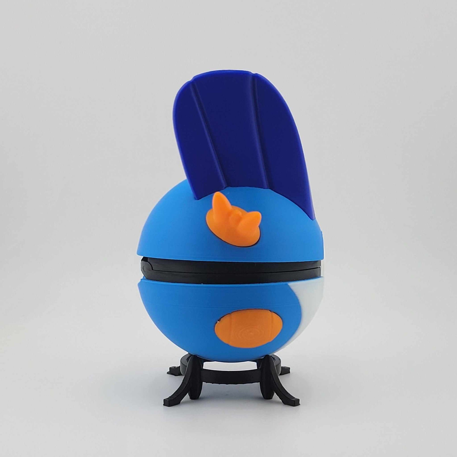 Make waves in your collection with this Swampert-themed functional Poké Ball, inspired by the powerhouse Water and Ground-type from Hoenn. Featuring bold blue hues and subtle design elements reminiscent of Swampert’s fins and rugged form, this 3D printed Poké Ball opens and closes for a touch of interactive fun while shining as a unique display piece. Perfect for Trainers who admire Swampert’s strength and style, it’s a striking way to celebrate one of the region’s most iconic final evolutions.