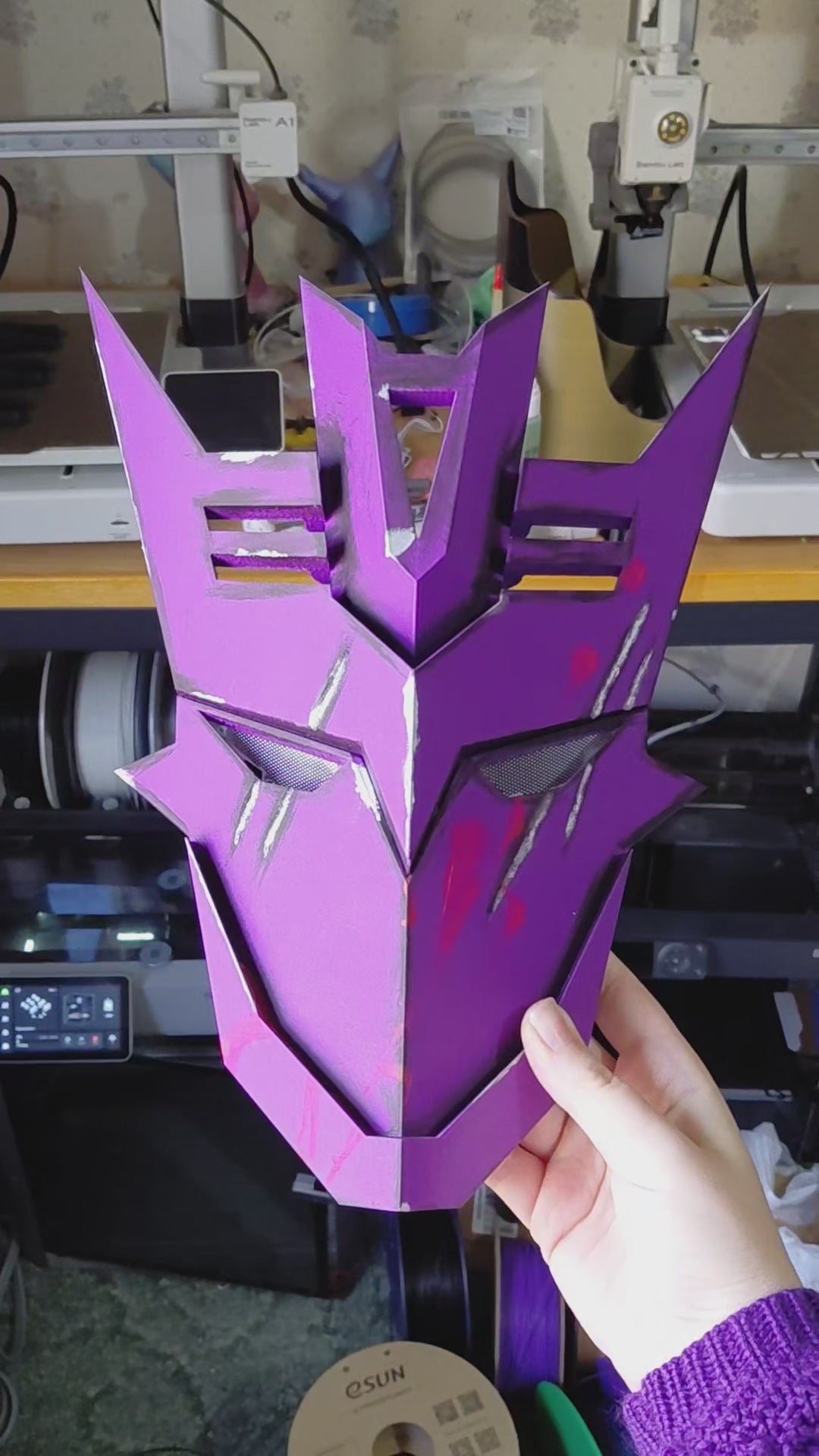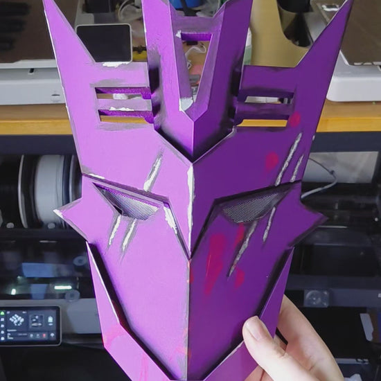 Unleash the chaos of the Decepticon elite with this striking Tarn Mask—a museum-quality 3D-printed collectible that captures the menacing presence of one of Cybertron's most feared commanders. Meticulously crafted and finished with authentic energon splatter detailing, this piece demands attention on any display shelf. Perfect for collectors who crave bold, cinematic aesthetics and uncompromising craftsmanship. Wear it, display it, command respect.