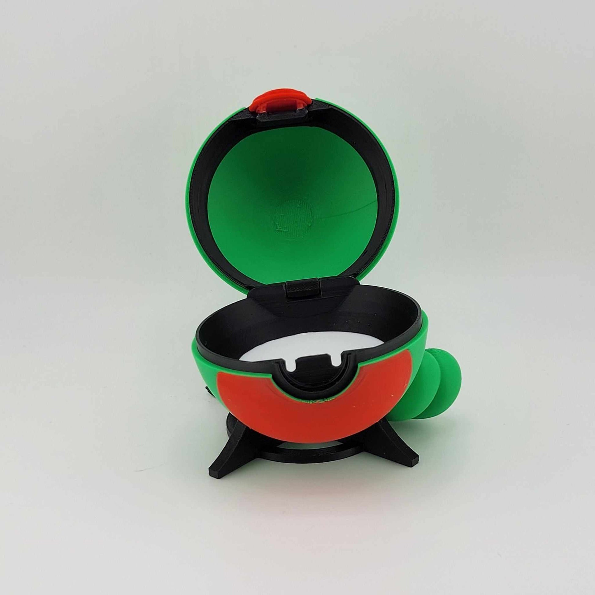 Each piece is printed with high-quality PLA and assembled by hand, right here in our home studio. Whether you're a longtime collector, a gamer with a soft spot for nostalgia, or looking for the perfect gift for your favorite geek, this Treecko Pokeball adds a touch of magic to any shelf, setup, or Poké-party.