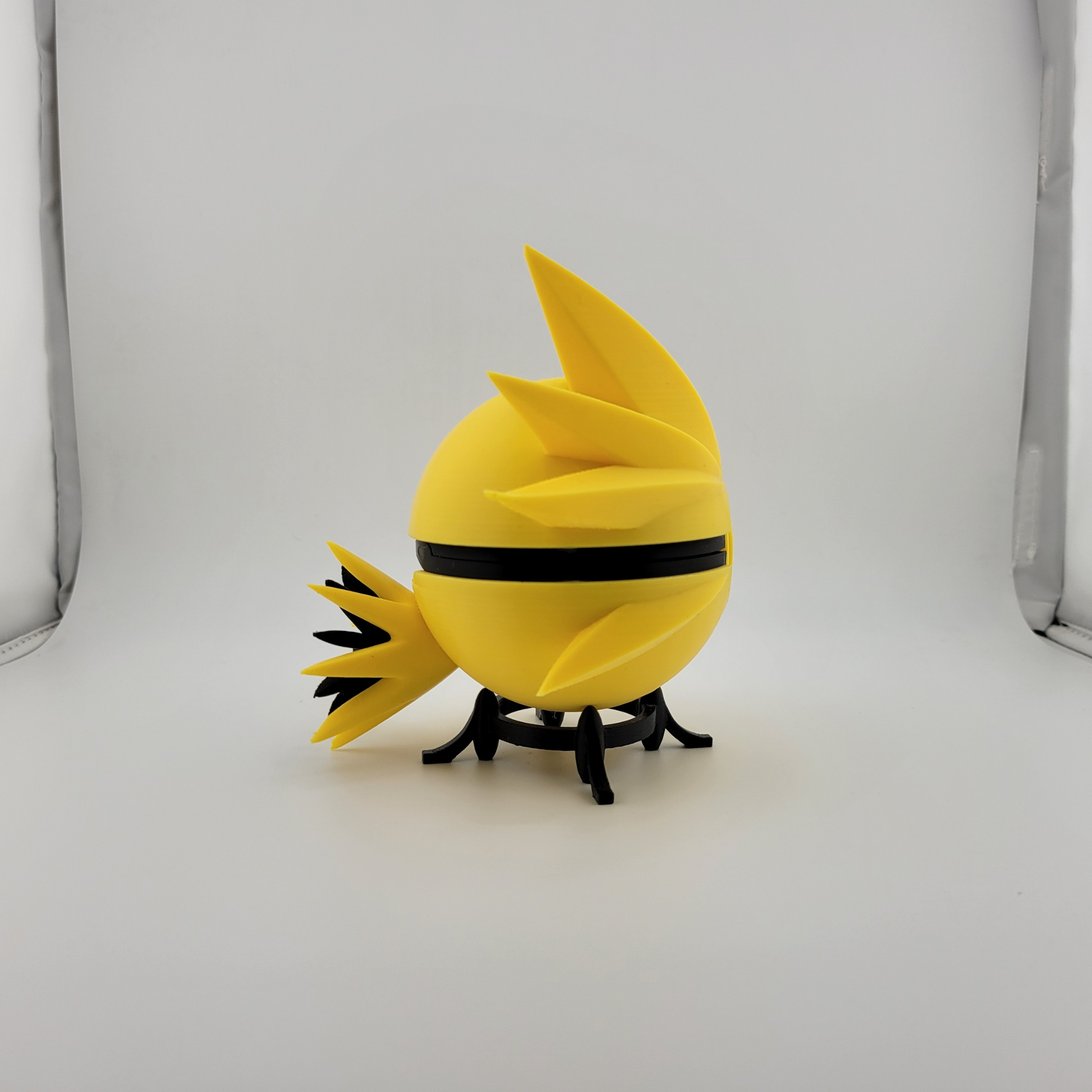Step into a world where fantasy meets the real world—one 3D print at a time. This handcrafted Zapdos Pokeball is inspired by Pokémon's Zapdos, designed with fans in mind and brought to life with care, detail, and just a spark of mischief.